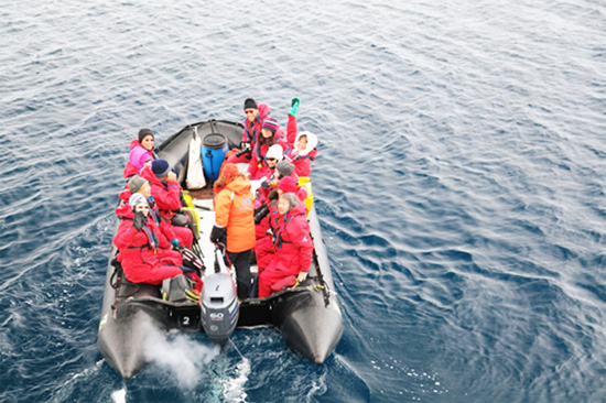 在Port Charcot, 首先會進行Zodiac cruising, 即是在橡皮艇上慢速巡航, 可以近距離觀賞冰山、海中的企鵝、或者其他野生動物.